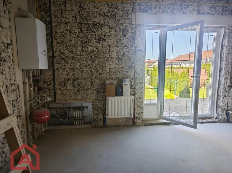 Разведена электрика и трубы под воду. Установлен газовый котел. Канализация центральная. Квартира (таунхаус) угловая, поэтому соседи только с одной стороны.