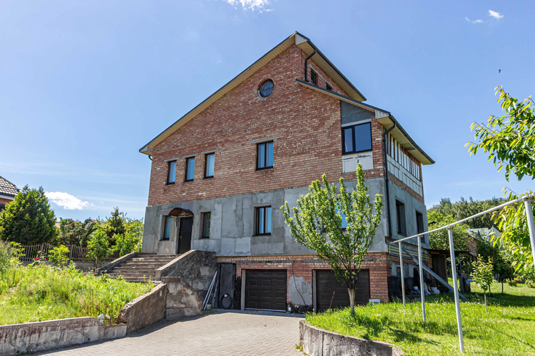 Кровля выполнена из металлочерепицы, стены - из г/с блоков, снаружи обложенных кирпичом, межэтажные перекрытия - из монолитных ж/б плит, установлены качественные деревянные стеклопакеты.