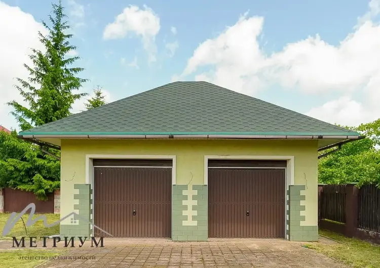 Во дворе отдельный гараж 49 кв.м. с подъемными воротами, на два автомобиля.