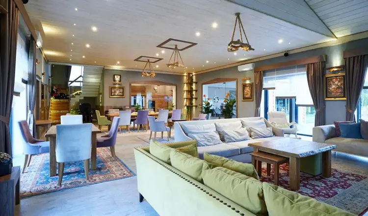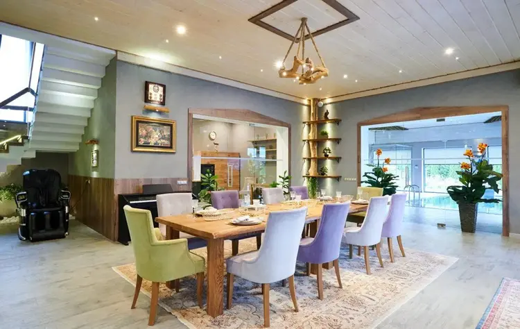 Дом спроектирован с учетом трендов архитектуры 2018 года.Пространство наполнено естественным светом блягодаря высоким потолкам и панорамным окнам.В отделке использованы натуральные материалы:дерево,керамогранит,паркетная доска. Вилла оснащена кондиционером, домашним кинотеатром, спутниковым телевидением, аудиосистемой Bose и высокоскоростным интернетом.