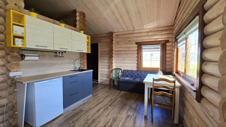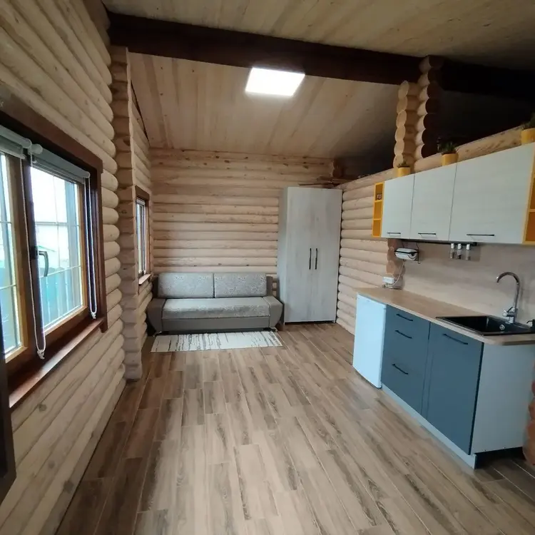 Готов для круглогодичного проживания. В доме имеются гостиная, сан. узел, душевая, помещение под баню (парилку). В гостиной имеются дополнительные спальные места на втором ярусе комнаты 8м2. Гостевой дом находится в углу участка, что даёт возможность создать свой собственный ландшафт со строительством основного дома. Периметр участка огорожен хорошим забором, на участке имеется теплица и плодовые деревья.