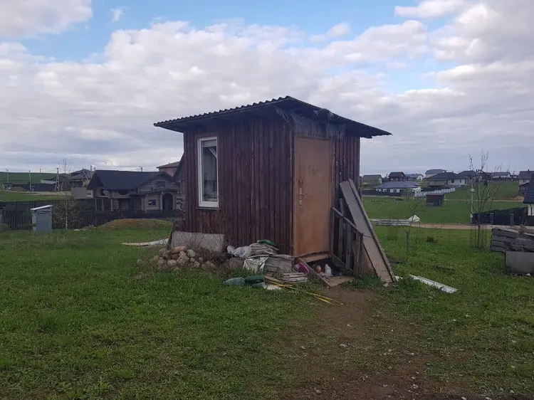 На участке также находится небольшая хозяйственная постройка для хранения инструмента, есть временный туалет.