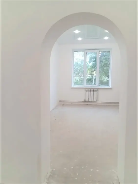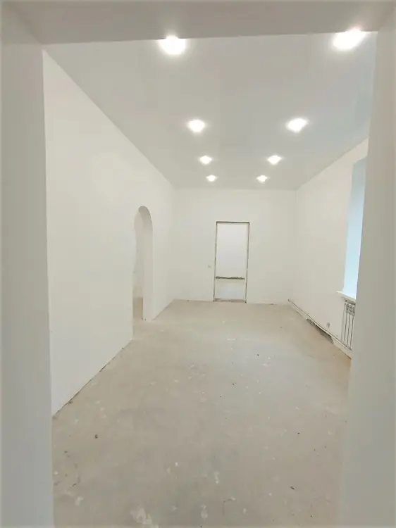 Материал стен - кирпич. Дом утеплен "термошубой". Новая проводка, натяжной белый глянцевый потолок, установлены точечные светильники, разведены и установлены розетки, выключатели. В квартире установлены окна ПВХ, стены полностью готовы к финишной отделке, пол выровнен. Вода, канализация заведены в дом. В просторной комнате 45,9 м.кв. можно сделать дополнительное зонирование или деление на комнаты. Квартира полностью готова к отделке по Вашему вкусу!