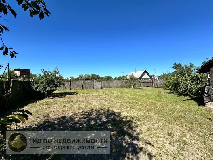 Дом расположен на участке площадью 13,76 сотки. Участок ухоженный, ровный, прямоугольной формы, огорожен по периметру забором (есть железные ворота для заезда автомобиля на территорию участка. Имеются насаждения: фруктовые деревья (яблони, абрикос), кустарники (смородина, малина), виноград, можжевельник и постройки: навес 4х6м, 3 сарая (один с погребом), уборная. Так же за домом закреплен участок 25 соток для садоводства, который находится за основным участком.
