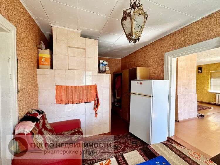 Сам дом бревенчатый (дуб), с внешней стороны обшит сайденгом. Фундамент крепкий, из обожжённого красного кирпича с бетонной отмосткой. Крыша – шифер. Общая площадь дома 51 кв.м., жилая -26,7 кв.м., кухня – 11,2 кв.м. Высота потолка 2,63 м. Все коммуникации (свет, вода, газ) центральные заведены в дом, канализация местная (выкопана яма, куплено кольцо, сделана проектная документация). Выкопана скважина. Электрическая насосная станция для скважины в доме, утеплена, находится под полом, что позволяет использовать воду круглогодично. В доме имеется действующая русская печь, в которой можно готовить еду и использовать ее по назначению и кирпичный погреб.
