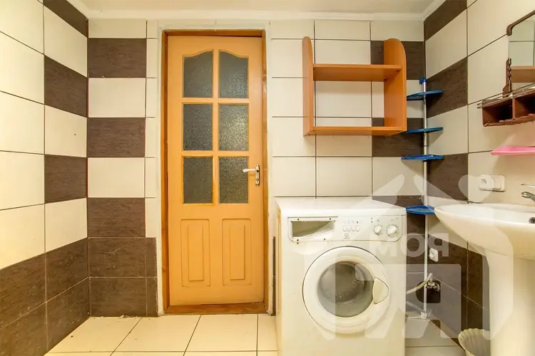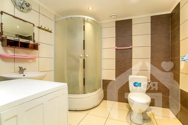 -Санузел в доме, облицован плиткой, установлена душевая кабина.