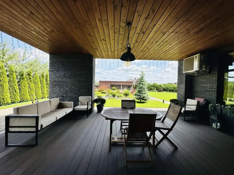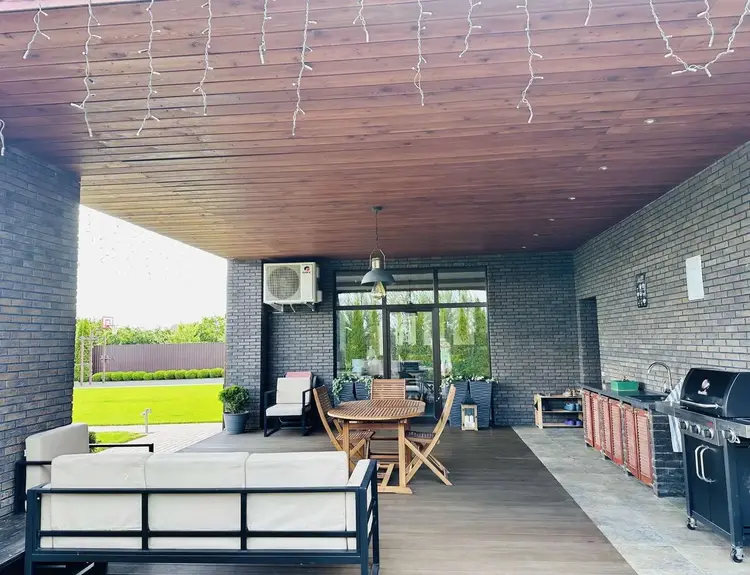 Парковка вмещает 2 авто под навесом. Выведена розетка под зарядную станцию. Автоматические распашные ворота Nice, видеодомофон на входной калитке. Есть вторые ворота для откачки канализации.