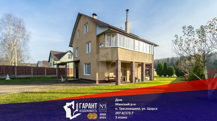 Дом, готовый к проживанию в живописном месте, деревне Тресковщина Минского района.Три уровня, 1-й этаж - блоки ФБС, 2-й, мансардный этажи - брус, обшит сайдингом. Крыша - металлочерепица.Общая площадь 219.7 м кв. жилая площадь 104.8 м кв. Все коммуникации в доме.С отделкой, мебелью, техникойВсего 15 минут на автомобиле от станции метро "Каменная горка".Популярное Раковское направление, удобные подъездные пути.Большой ухоженный участок 16.79 соток + 3.22 соток.В непосредственной близости расположен пансионат, детский сад, два магазина, почтовое отделение и амбулатория. Остановка общественного транспорта (автобус отправляется 4 раза в день).Полюбоваться красивыми видами, половить рыбу (форель) можно в протекающей рядом реке Ислочь, а также в двух платных водоемах. Любителей архитектуры наверняка заинтересуют руины водяной мельницы 19 века.Прямая продажа.Поможем выгодно продать вашу недвижимость для покупки этой!Расширенные консультации по покупке, продаже и обмену можно получить в офисе ;Метро Каменная Горка; по адресу: г. Минск, ул. Притыцкого, 97. Тел. +375173367744, +375447790203. ООО "Твоя столица", УНП 101136973, лицензия №02240/15 от 17.02.05г.