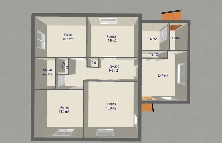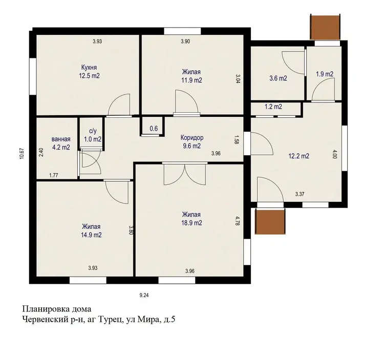 Общая площадь 73,3 кв.м, три раздельные комнаты( 18,9; 14,9; 11.9 квм), просторная кухня -12,5 кв.м, большая летняя комната . Дом полностью готов к круглогодичному проживанию.