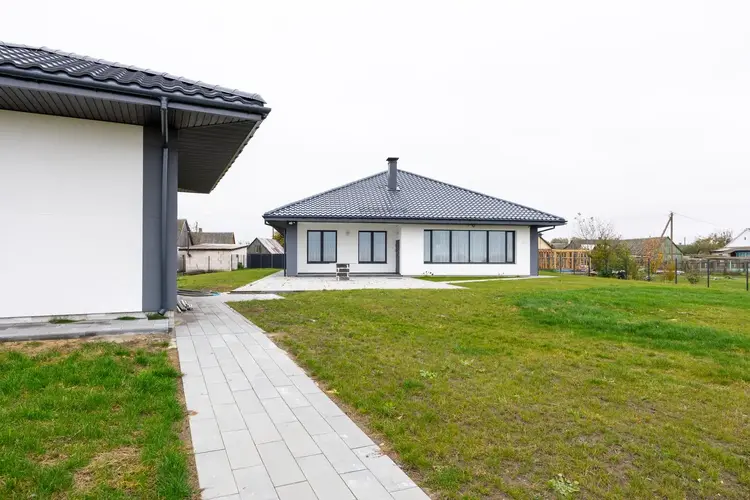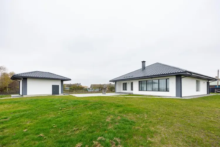- Основной дом -178 кв.м., гостевые дома 28 и 23 кв.м. В отделке использованы импортные строительные материалы, мебель из натурального дерева и кожи. В печи-камине можно готовить блюда белорусской кухни, прямо из окон можно любоваться рекой Припять. Откатные ворота производство Италия.