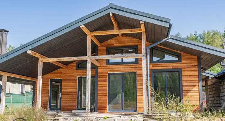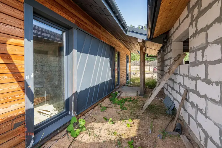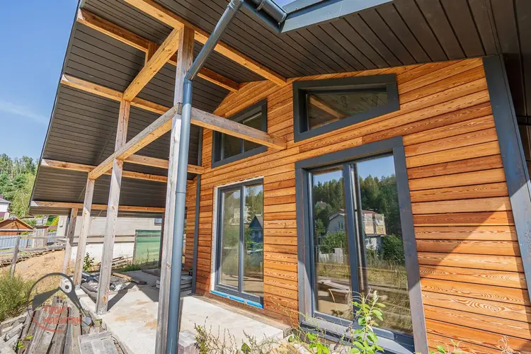 Дом из лиственницы. Утепление 250мм! Газ подведен к дому (см. фото), вода и электричество в доме. Окна в пол с выходом на террасу с шикарными видами. Планировка продумана для комфортного проживания семьи. Просторная кухня-гостиная с выходом на террасу, две спальни, санузел, бытовая комната. Дом без отделки, что позволяет вам воплотить свои дизайнерские решения.