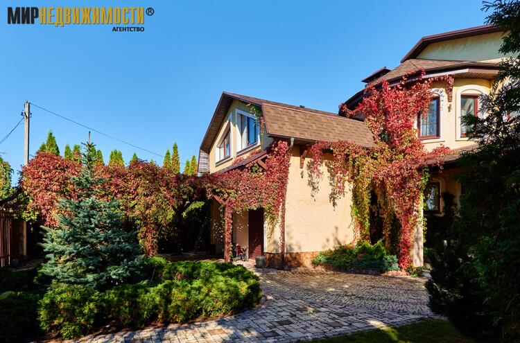 Территория: участок 0,2222 га огорожен высоким деревянным забором. Ландшафтный дизайн. Автоматические въездные ворота. На участке высажены туи, плодовые и хвойные деревья и другие многолетние и декоративные растения. Красивая вечерняя подсветка дома.