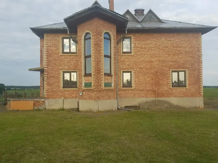 Общая площадь- 275 м2/жилая -166 м2, подвал+2 уровня.— Стены в 2 кирпича (толщина 0,5 м), подвал под всем домом.