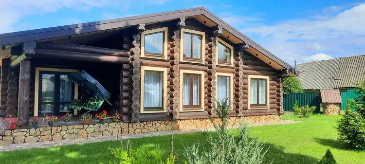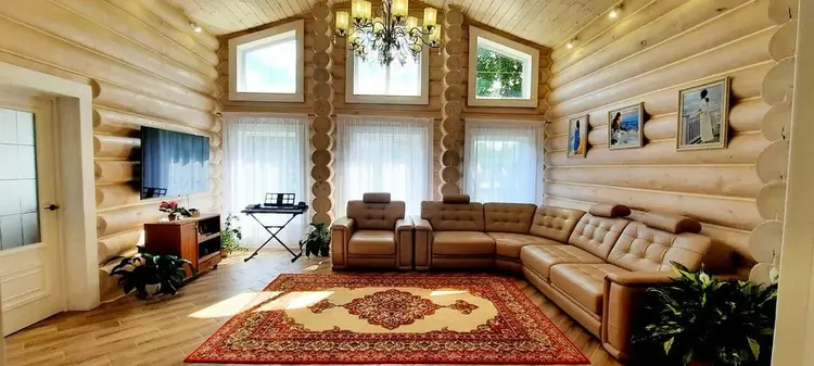 Гостевой дом обустроен красивой зоной барбекю (встроенный казан, мангал, печь), удобными местами отдыха. Подведена вода с умывальником на улице. Дом со всеми коммуникациями: санузел с бойлером, большая гостиная обустроена кухней, барной стойкой, обеденой зоной с большим диваном. Установлена современная печь - камин для обогрева и отдыха у камина. Русская баня с помывочной и душевой зоной. Качественные полоки из липы и дуба.