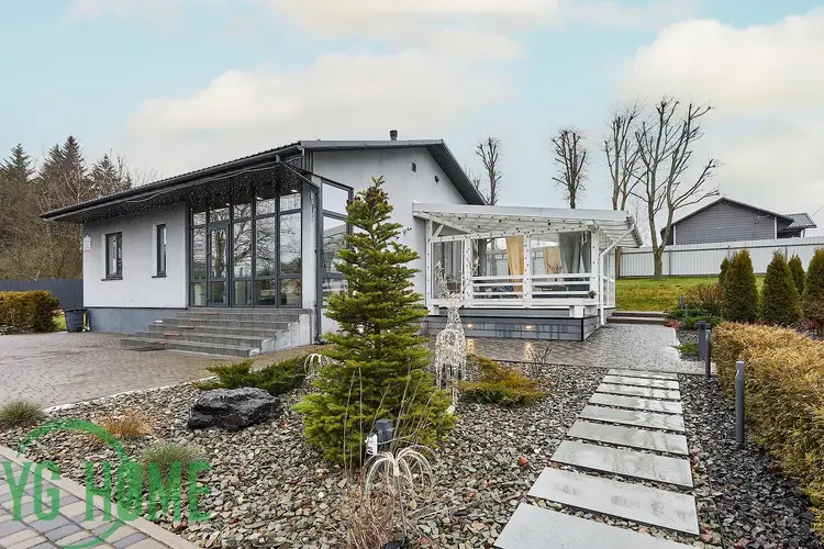Красивый ландшафтный дизайн, на участке хозблок. Огорожен.