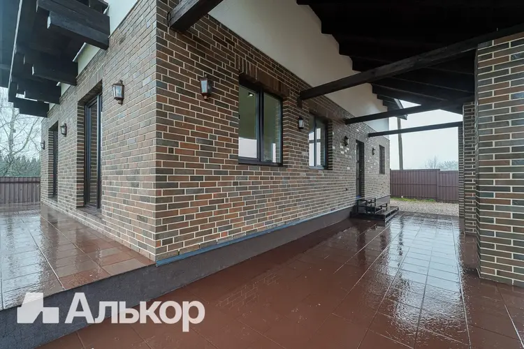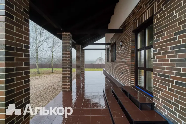 Крыша мягкая черепица. Фасад отделан клинкерным кирпичом. Стены утеплены, оштукатурены. Установлены качественные тонированные стеклопакеты KBE с фурнитурой ROTO.