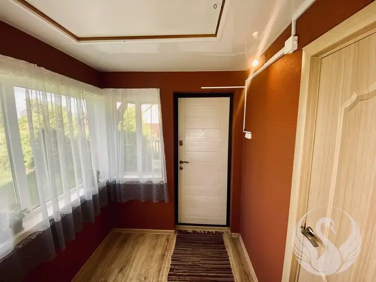 - Ремонт в доме сделан в экологичном стиле, потолки в жилой зоне отделаны деревом. Полы в жилой зоне также деревянные, в кухне-гостинной - ламинат.