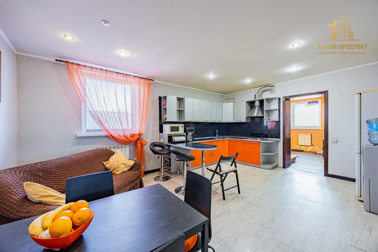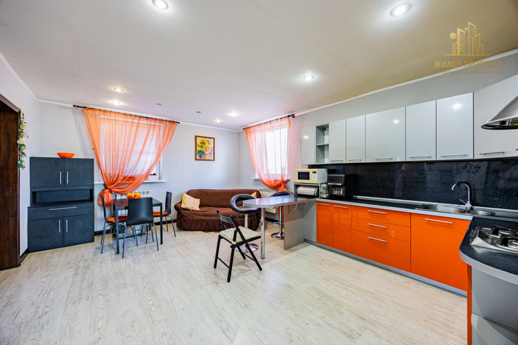 На первом этаже: просторная веранда, прихожая, гостиная (детская), спальня, хорошая кухня (12 м2). Вся кухня оснащена кухонным оборудованием, бытовой техникой, всем необходимым для готовки и времяпровождения с семьей. Совмещенный санузел, котельная.