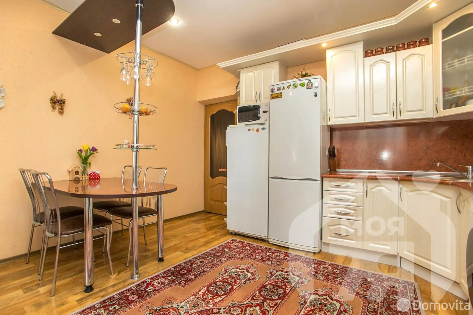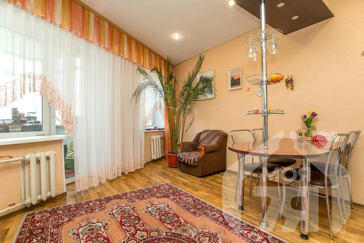 - Квартира расположена на 3 этаже 4-этажного кирпичного дома 2001 года постройки. Общая площадь квартиры составляет 105,4 м², по СНБ 107,1 из которых 61,8 м² — жилая площадь. Просторная большая кухня 18,4 м² с выходом на большой комфортный застеклённый балкон позволит вам наслаждаться утренним кофе. В квартире выполнен отличный ремонт: на полу ламинат и плитка, окна ПВХ, стены под обоями выровнены и шпаклеваны. Все комнаты большие, просторные и светлые. Ванная и туалет облицованы плиткой .