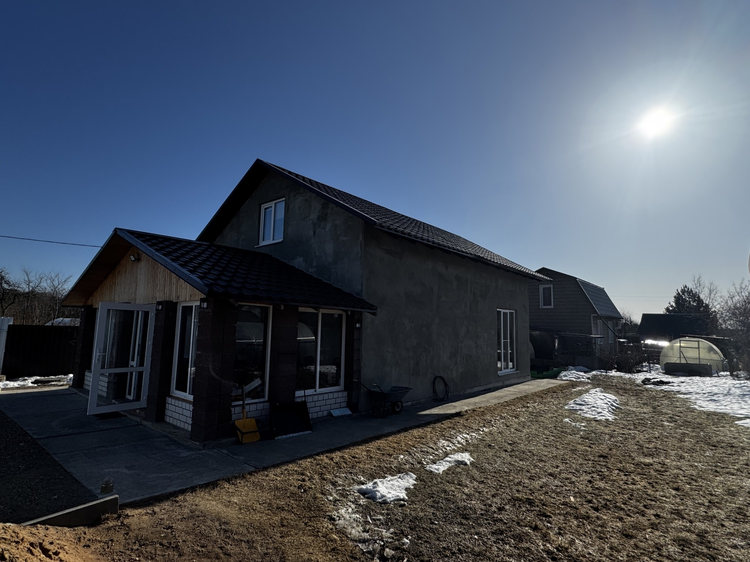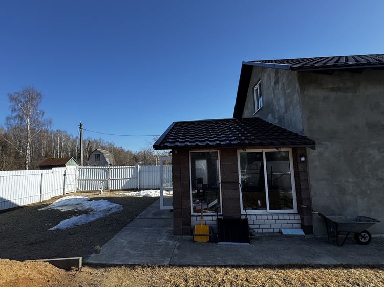 В доме свободная планировка, можно обустроить пространство по своему вкусу. На участке есть теплица, место для грядок, большая зеленая зона с газоном, плодовые деревья и кустарники, а также место для парковки автомобиля. Запланировано место для мангальной зоны барбекю. Участок ровный, площадью 0,0545 га, поднят во время строительства и всегда сухой.