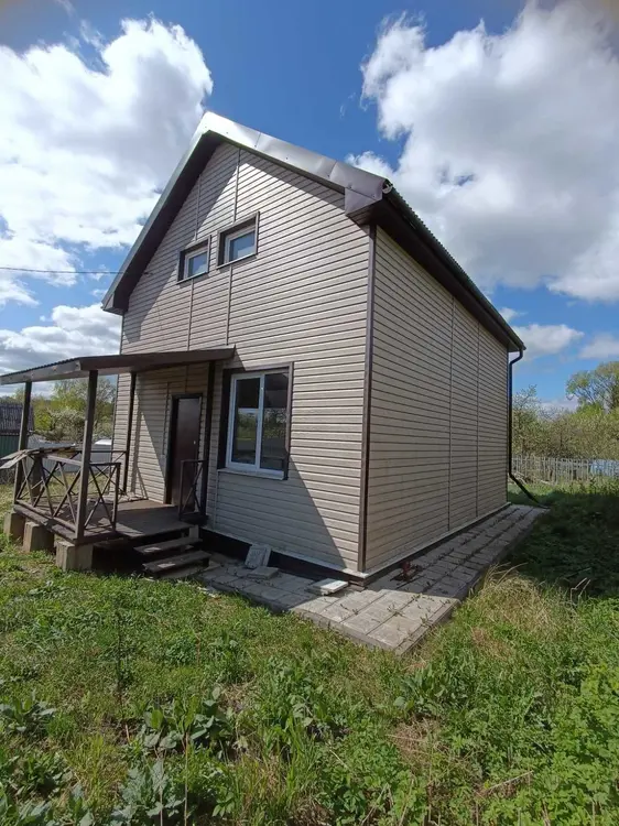 Дом 2021 года постройки, 99,5 кв.м., двухэтажный - деревянный каркасный, обшит сайдингом. Крыша- металлочерепица, окна ПВХ, внутри обшит плитами OSB. На первом этаже три комнаты. На второй этаж установлена новая кованая лестница. На втором этаже две изолированные комнаты и холл. Новая электропроводка. Проведен интернет. При строительстве дома использовались качественные и дорогостоящие материалы. (Возможна временная регистрация до оного года с продлением)