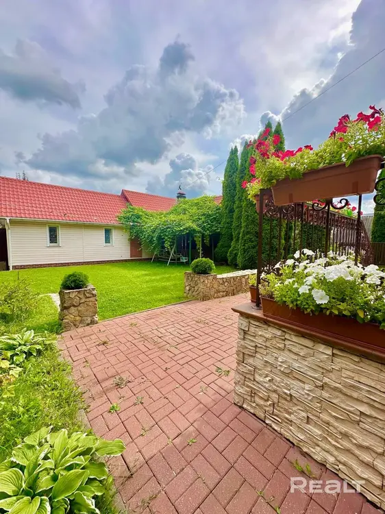 Вокруг дома расположен ухоженный участок. Сделан ландшафтный дизайн, высажены декоративные деревья. Имеются садовые насаждения в виде яблонь, черешни, сливы и прочее.