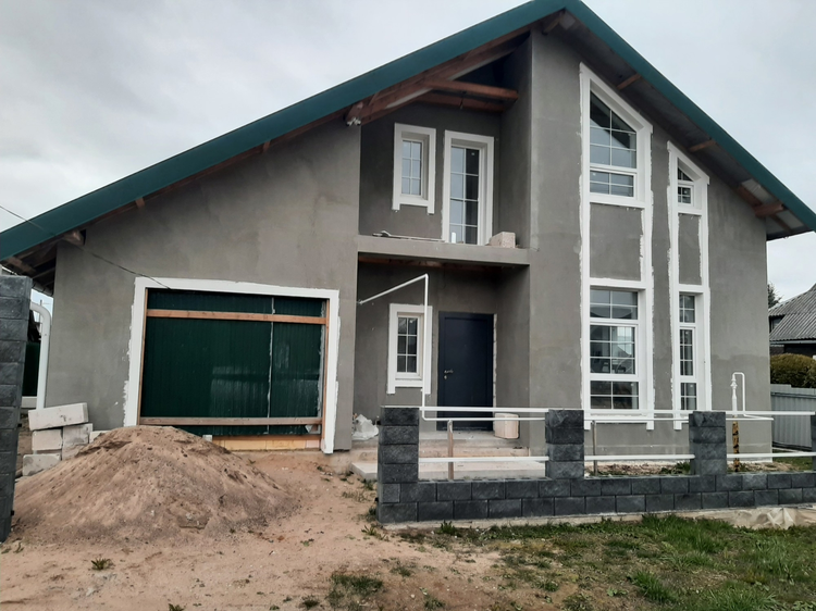 Коттедж построен из газосиликатных 500 мм блоков, утеплен и отделан сайдингом. Крыша-двухскатная, песчано-цементная. Участок 9 соток, огороженный забором из доломита.