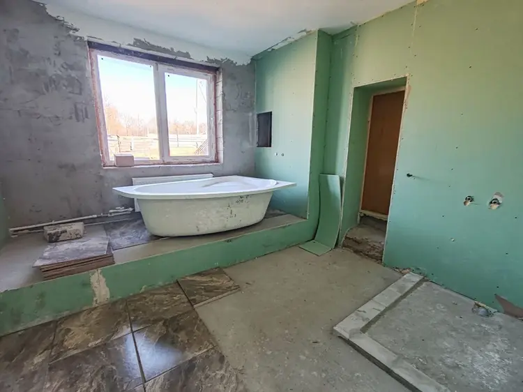 Дом построен из газосиликатных блоков, крыша - металлочерепица. Дом без внутренней отделки (либо с частичной отделкой), сдан в эксплуатацию в 2024 году. Коммуникации - водоснабжение и канализация центральные. Отапливается дом твёрдотопливным котлом. Газ рядом.