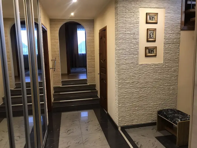Немного о коммуникациях. Канализация выгребная яма из 4 колец по 2 метра каждая, чистка проходит регулярно. Вода центральная и скважина. Позволяет экономить, горячая вода городская через бойлер, холодная из скважины через современный насос. В доме современный бойлер и газовый котёл ( все спрятано на цокольном этаже). Проложено оптоволокно. Электрика разведена по дому и участку, новый счётчик и пакетник с возможность обесточить отдельно каждую зону дома.