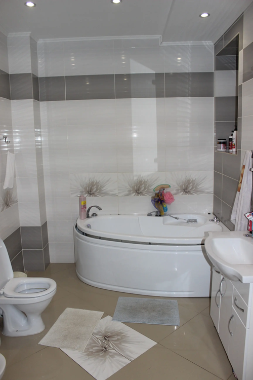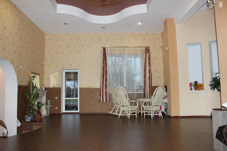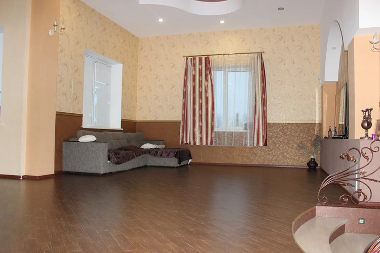 1 этаж: 2 комнаты, просторная гостиная 50+ кв.м., кухня 45 кв.м., прихожая и коридор, санузел с ванной.