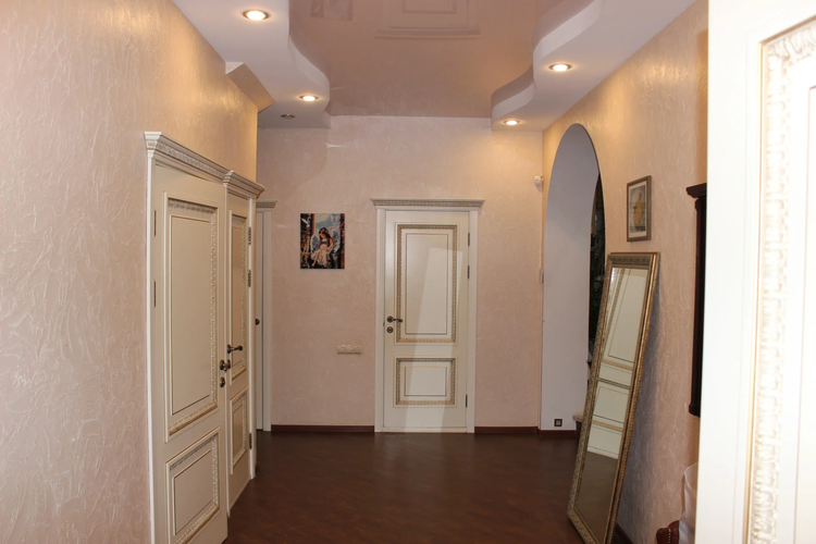 Цокольный этаж: гараж, холл, сауна и большая комната отдыха (можно сделать бассейн), санузел, душ, спортзал, котельная, кладовая, выход во двор. Хорошая внутренняя отделка. Больше фото по запросу.