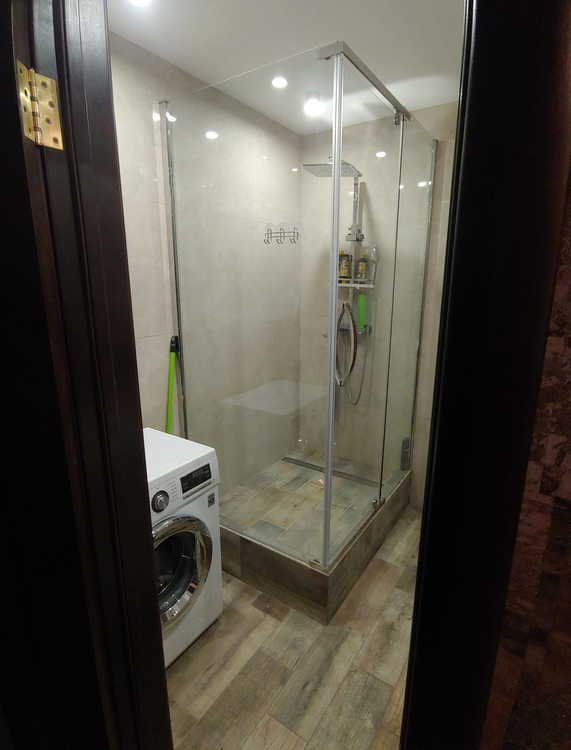 Качественная шумоизолирующая входная дверь, двери, плинтуса, подоконники, столешница из массива дерева. На полу испанская рельефная плитка под старое дерево, в комнате паркетная доска. В квартире имеется всё необходимое для комфортного проживания: большой встроенный шкаф с зеркалами, холодильник, большой кухонный стол из дерева, красивые стулья из массива дерева, микроволновая печь, электрочайник, кухонная посуда и принадлежности, стеклокерамическая электроплитка, вытяжка, фильтр очистки воды обратного осмоса, кондиционер с подогревом, эксклюзивная душевая кабина, гигиенический душ, стиральная машина. Широкая двуспальная кровать 180х200 см. с ортопедическим матрацем, новые чистое постельное белье, полотенца, шампунь, гель для душа. Все вещи в новом состоянии.