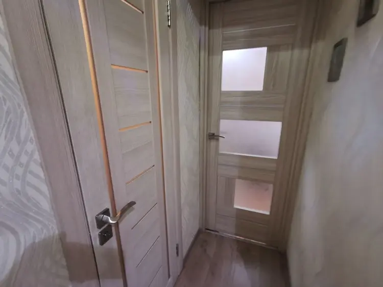 Все окна стеклопакеты деревянные, на полу всей квартиры стяжка, ( ламинат, плитка), все потолки натяжные, входные двери металлические , лоджия застеклена и утеплена.