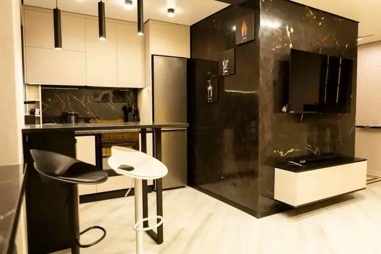 Продается двухкомнатная квартира по адресу: пр-т Черняховского. Квартира расположена на 3 этаже 5-этажного кирпичного дома, построенного в 1963 году. Общая площадь — 44,5 кв.м., кухня — 24,4 кв.м. В квартире проведен капитальный ремонт с перепланировкой, есть все утвержденные проекты переустройства. Квартира шумоизолированная. Электрическая мощность увеличена до 9 кВт, газоснабжение отключено. Теплым пол в прихожей и санузле. Все окна — стеклопакеты, выходят на тихий, зелёный двор и частный сектор на западную сторону. В квартире есть застекленный балкон с тонированными стеклами. Дизайн интерьера выполнен в современном стиле с функциональностью и минимализмом. Кухня оснащена новой бытовой техникой — холодильником, индукционной плитой, духовым шкафом, микроволновой печью, вытяжкой. В гостиной разместился мягкий диван, большой телевизор установленный на стене с декоративной штукатуркой под мрамор, есть вместительный гардеробный шкаф и кондиционер. Санузел совмещенный с душевой кабиной, подвесным унитазом, электрическим полотенцесушителем, вся сантехника от Rehau. Двери скрытого монтажа ведут в спальню с отдельной гардеробной комнатой, в которой зеркало с подсветкой и много места для хранения. В квартире комбинированное освещение — парящие потолки и точечные светильники на кухне, трековый свет в гостиной и прихожей, вечерняя неоновая подсветка в спальне и гостиной, ночники с датчиками движения у входа в спальню и прихожую. У входной двери установлен мастер-выключатель, который отключает свет во всей квартире. Дом расположен в центральной части города, что обеспечивает максимальную удобство и развитую инфраструктуру.