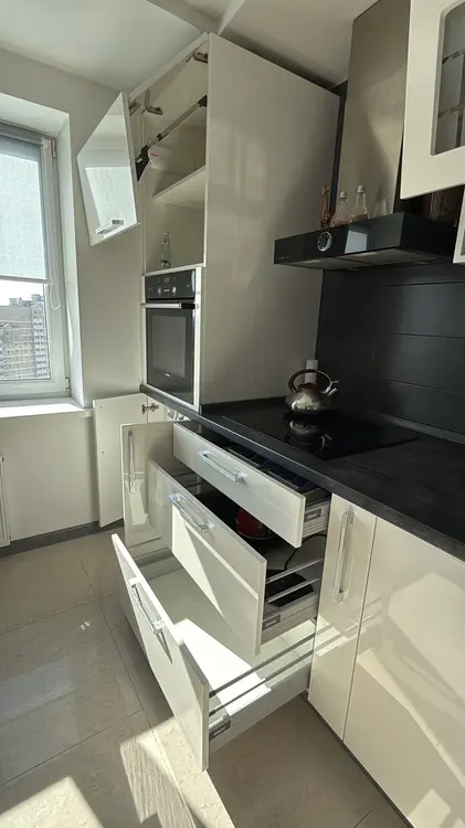 В квартире сделан качественный ремонт из дорогостоящих материалов, остаётся кухня .Дом под полным видеонаблюдением. В подъезде 2 лифта включая грузовой. Большая стоянка у дома.