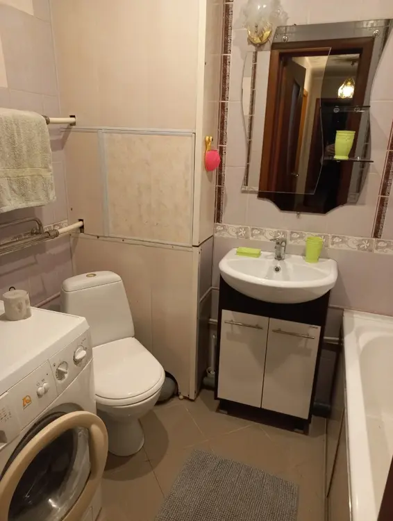 Квартира в отличном состоянии, выполнен качественный ремонт. На полу — ламинат и плитка, установлены окна ПВХ, а входная дверь — металлическая. В помещении много света, царит уютная атмосфера.