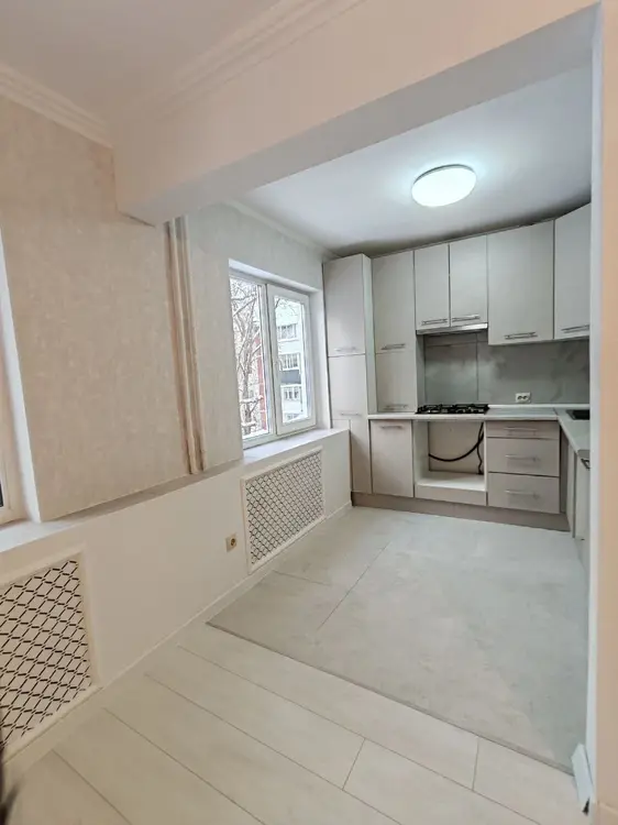 В квартире произведена узаконенная перепланировка, кухня объединена с гостиной с расширением обеденной зоны, оборудована кладовая, которая может быть использована как гардеробная. В ходе ремонта полностью заменена электропроводка, выровнены и покрашены потолки, на стенах декоративная штукатурка и обои, на полу ламинат, окна ПВХ. Новая кухня со встроенными газовой плитой и вытяжкой.