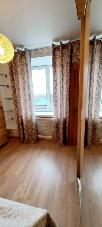 По всей квартире на полу стяжка. Увеличен санузел. Все коммуникации и проводка заменены. Установлены качественные стеклопакеты ПВХ. Балкон утеплён и застеклён стеклопакетами ПВХ. Окна выходят на запад и восток. Панорамный вид на город, закаты и праздничные салюты. Без застройки и без перспективы застройки окна в окна.