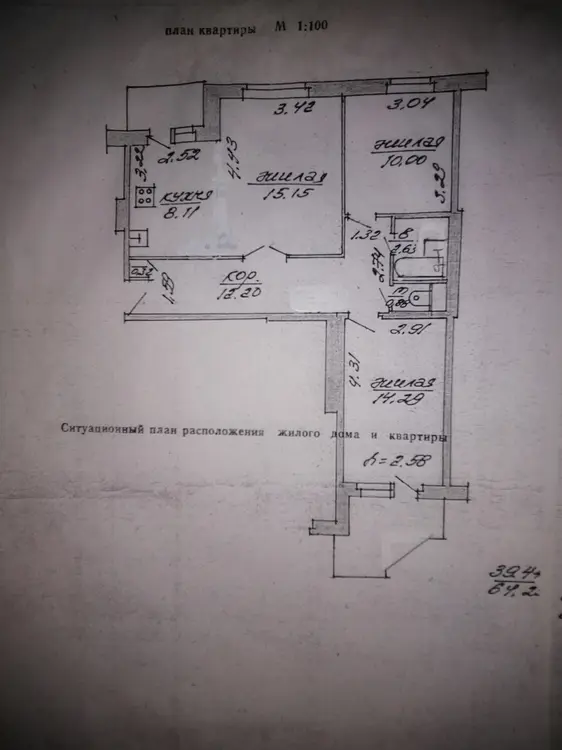 Район юг-3. Трехкомнатная квартира. Современный, красивый проспект «Победы», с широкими тротуарами и зелеными зонами. Средний этаж. Общая площадь 64,2м.кв., жилая 39,4м.кв, кухня 8,1м.кв. Стандартная планировка. На разные стороны, восток – запад. Окна рамы деревянные. Два балкона. Балконы застеклены, рамы деревянные. Светлая, сухая и теплая квартира. Без ремонта.