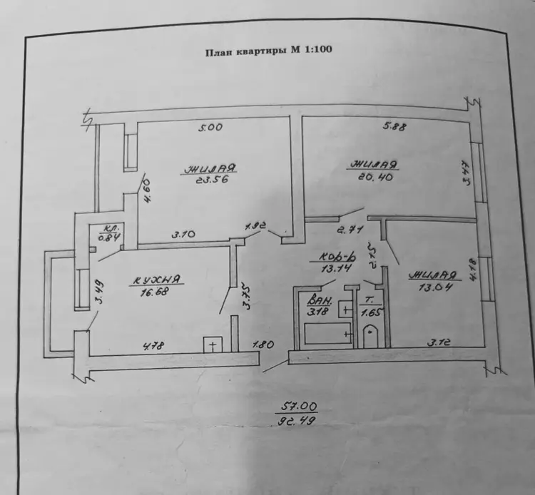 Продаётся огромная трёхкомнатная квартира в самом центре города.