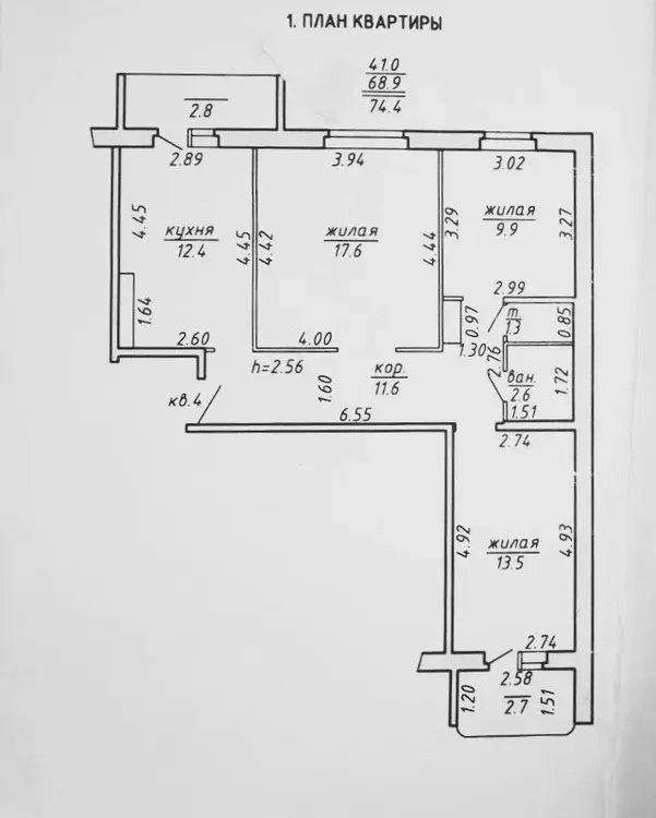 Продается просторная светлая трехкомнатная квартира в Витебске, с изолированными комнатами, общей площадью 74,4 м², по ул. Терешковой, 16/4.