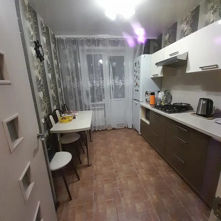 Состояние жилое, ремонт косметический. Окна ПВХ. Полы: на кухне- плитка , коридор- линолеум, комнаты-ламинат. Балкон с выходом из кухни застеклен ( ПВХ) Огромная лоджия с выходом из спальни не застеклена, что позволяет наслаждаться свежим воздухом.