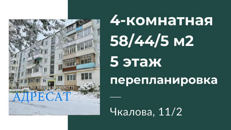 Продаётся четырёхкомнатная квартира на Чкалова.