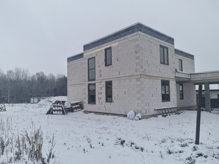 С/Т Водолей 2010, территория товарищества огорожена, въезд через шлагбаум,видеонаблюдение, широкие проезды(зимой чистят), много кто живет круглогодично.Центральный водопровод, газ на участке. Установлены качественные окна KBE 76 профиль с 50мм стеклопакетом и мульти стеклами,выход на терассу KBE PREMIDOOR с беспороговой системой.Высота потолков на первом этаже после чистовой отделки 3м,Высота окон на первом этаже 2.9м. На первом этаже большая кухня-столовая(78м)с выходом на терассу, кабинет(18.5м), гардеробная, котельная, 2 кладовые, тамбур, прихожая На втором этаже мастер спальня(49м) с балконом, 2 детские комнаты с сан.узлами, 1 гостевая комната, кладовая. Разведена канализация, вода введена в дом, проложена труба для ввода электричества. Крыша балластнная мембрана FIRESTONE, навес/терасса мембрана. Есть проект по отоплению, электрике. Возможен обмен на квартиру в Минске