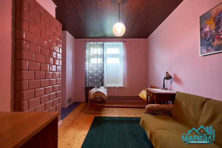 Дом д. Волковичи Дзержинского района, 15 минуть на авто от МКАД (17км). Остановка электрички Волчковичи, до станции 15 минут ходьбы (по расписанию каждый час до ст. Курасовщина, ст. Институт Культуры). Рядом МКАД-2 и остановка маршрутки. Участок 15 соток, в частной собственности, огорожен, посажены плодовые деревья, кусты, цветы и др. декоративные растения. Улица заасфальтирована, в домах с двух сторон живут соседи. В деревне есть магазин. До Фаниполя 5 км (одна остановка на электричке).