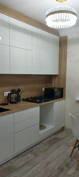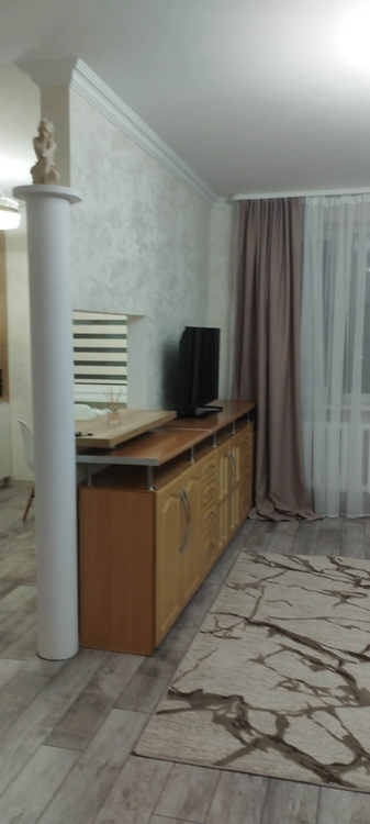 Квартира-студия, расположена на 4 этаже 5-ти этажного дома. Состоит из 2-х комнат. В одной комнате двуспальная и односпальная кровати, во второй - двуспальный угловой диван.