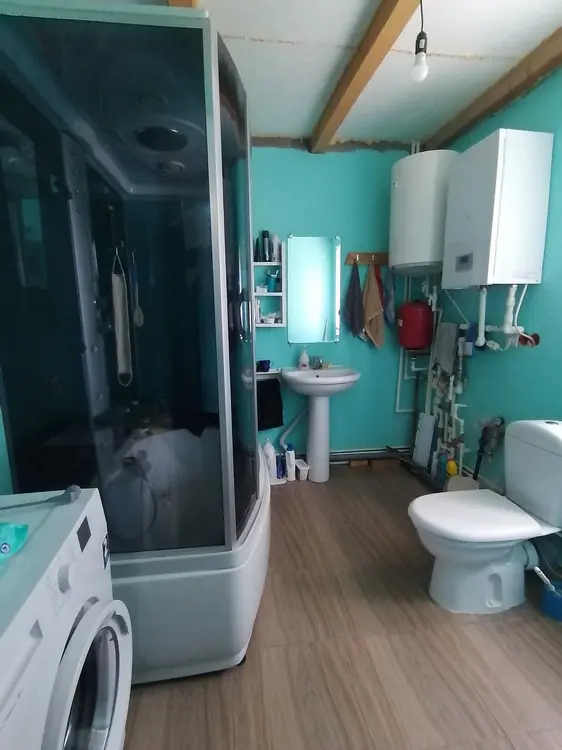 Это тёплый и светлый дом, расположенный в 5 км от Витебска, в деревне Вороны. Он построен из газосиликатных блоков и утеплён, а также оштукатурен. В доме есть все необходимые коммуникации: центральное водоснабжение и электроотопление по льготному тарифу. Также в доме есть тёплый пол в прихожей и ванной комнате. Окна выполнены из ПВХ, а входная дверь — металлическая.