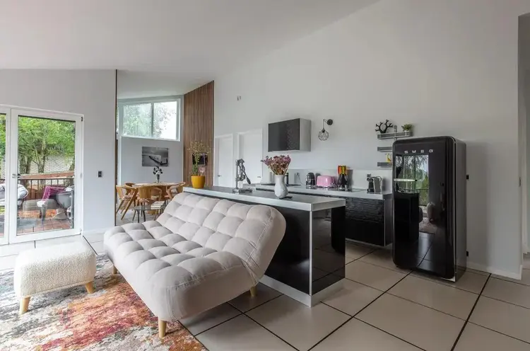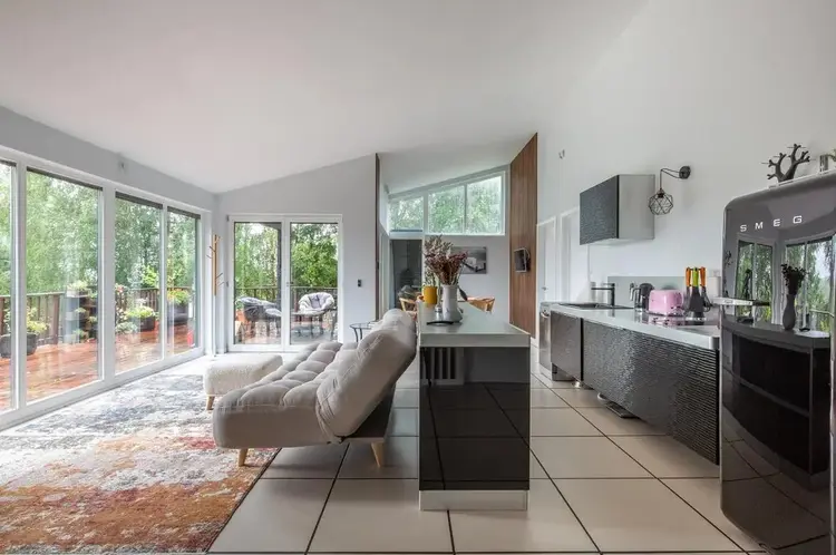 В основном доме большая кухня-гостиная с панорамным видом на поселок и лес, 2 спальни, кабинет/гостевая комната, 2 санузла, парная, камин Morso, большая терраса. Гостевой дом с зоной барбекю, домашним кинотеатром, камином, винным шкафом и индивидуальным санузлом. В каждом доме есть стиральная и посудомоечная машины. Объекты оборудованы мебелью и техникой известных брэндов, которые остаются новым хозяевам. Высокоскоростной интернет.