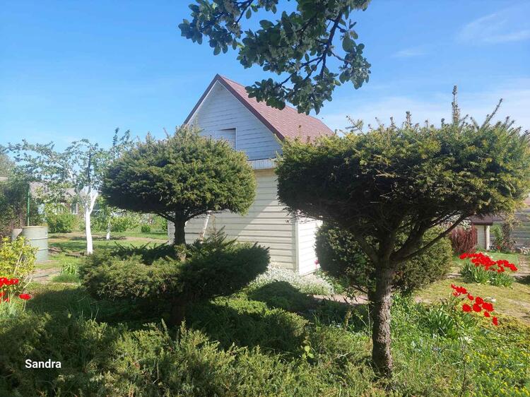 -сад с плодовыми деревьями (яблони, груши, абрикосы, персики, сливы, вишни), плодово - ягодные кустарники (жимолость, черная и красная смородина, крыжовник зеленый и темный, голубика, клубника, земляника), декоративные кустарники и хвойники.