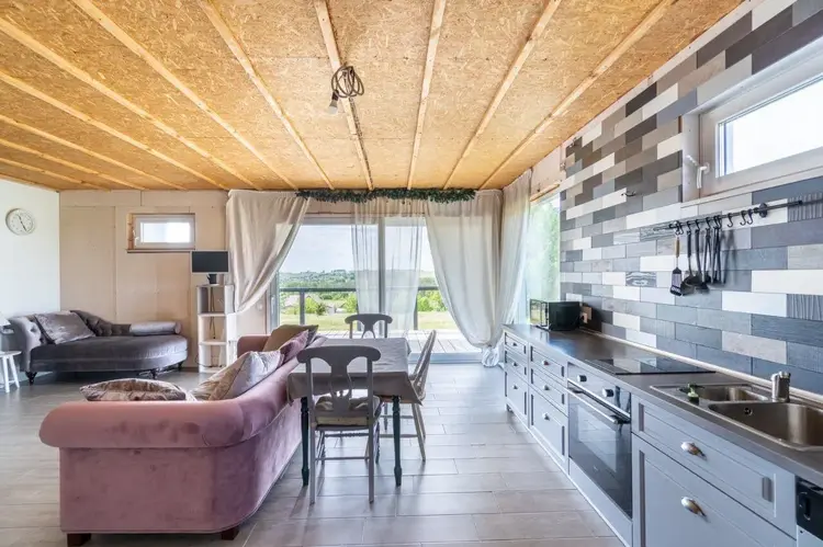 Общая площадь составляет – 80 м2, с 2 жилыми комнатами (площадью 10 и 18 м2) и кухней-столовой площадью - 39 м2.